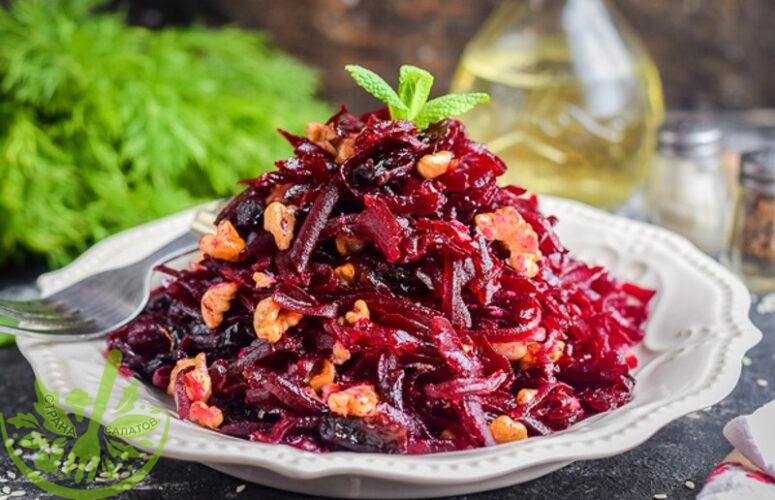 Фитнес салат из свеклы, чернослива и грецких орехов без майонеза