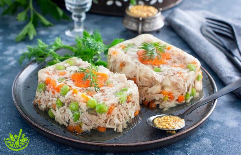 Заливное из курицы и индейки с горошком: красивая закуска на праздник