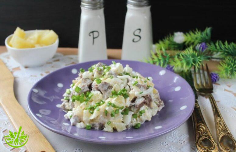 Салат с языком и ананасом- отличный лёгкий рецепт