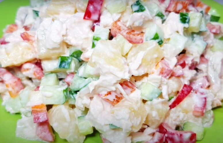 Праздничный красивый салат «Гиацинты» с колбасой и сыром